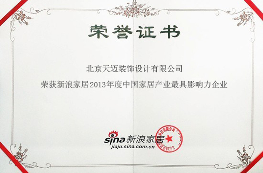 即将告别2013年,在这过去的一年有付出有收获,天迈装饰与新浪家居多年的合作,再一次荣获“中国家居行业最具影响力奖”,这是对天迈装饰一年努力的肯定,更是对业主的负责。“花鸟尚绘春,人生莫虚度”展望新的一年,天迈的任务还非常艰巨,还要做好充分的思想准备,以适应变幻莫测的市场,在市场经济的大潮中努力打拼。